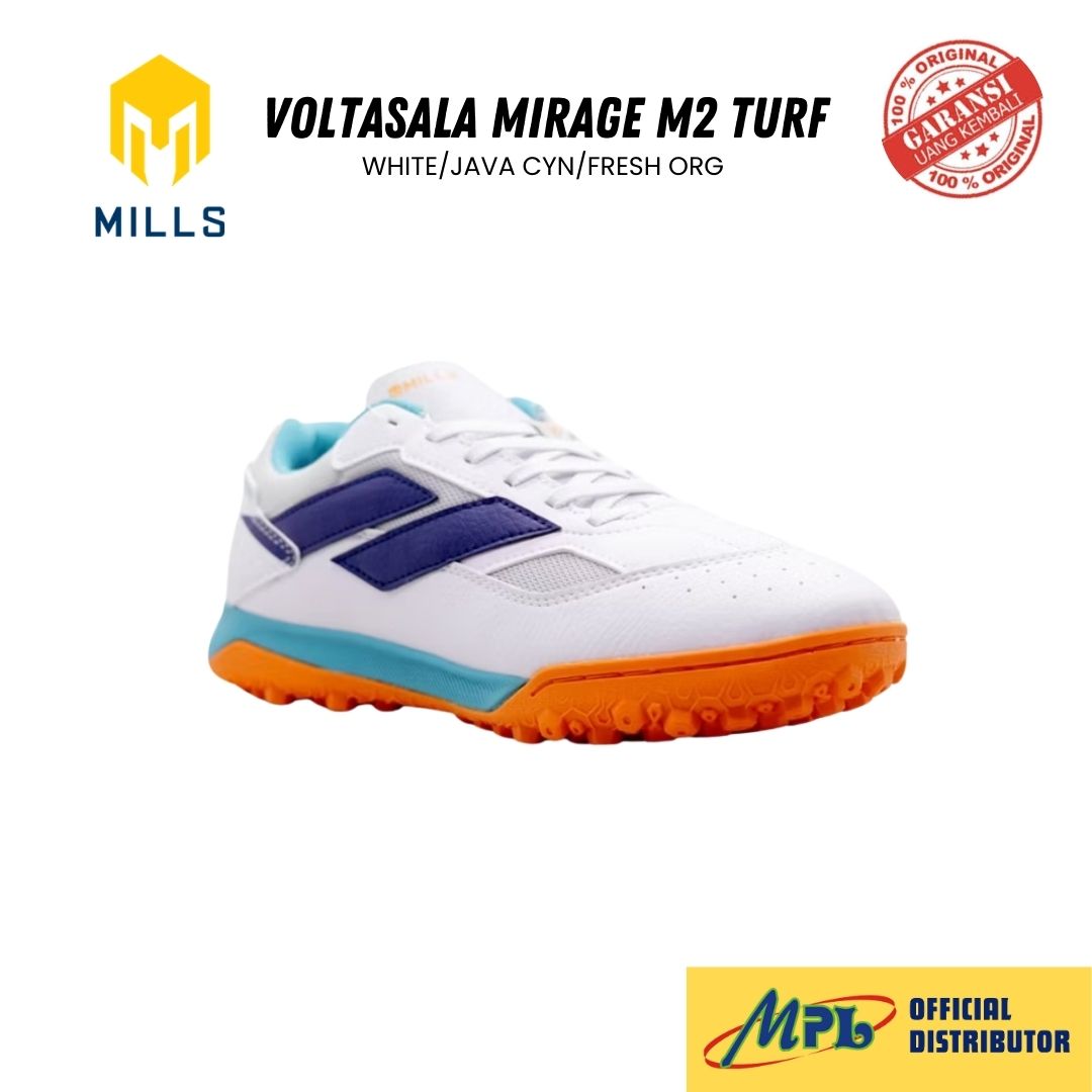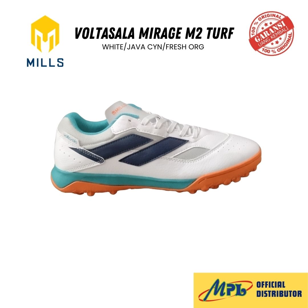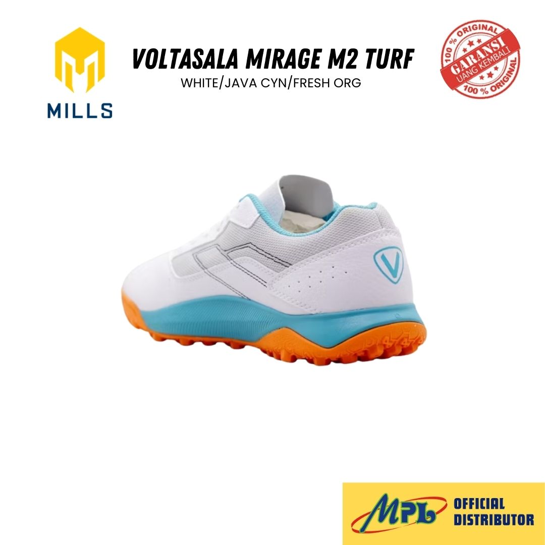 / SEPATU FUTSAL MILLS VOLTASALA MIRAGE M2 TURF WHT/JAVA CYN/FRESH ORG 9002205